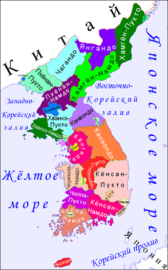 | Административное деление: | Южная Корея в административном отношении подразделяется на 9 провинций и 7 городов со статусом провинции. |