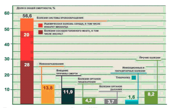 Рисунок. Причины смертности в России, 2007г.