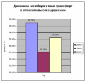 Наибольший удельный вес в классификации расходов занимают межбюджетные трансферты. В 2008 году доля расходования этих средств составляет 34,73%. Если говорить о динамике этого показателя, то уже в следующем году (2009) он снижается на 2,21 %. Но в денежном эквиваленте увеличивается на 141,56 млрд. руб. В среднесрочной перспективе предусмотрено абсолютное увеличение межбюджетных трансфертов к 2010 году до 2 720,97 млрд. рублей, что составляет на 439,41 млрд. руб. больше по отношению к 2008 году. В диаграмме 1 и 2, можно наглядно увидеть, как происходит изменение этого показателя.
