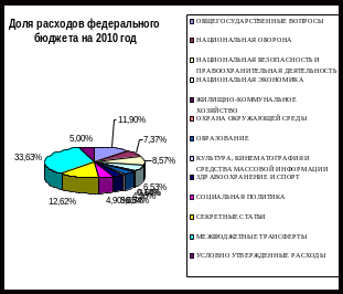 В 2010 году произойдут изменения доли расходов в процентном соотношении от общего объема расходов. Неизменными лидерами остаются межбюджетные трансферты и общегосударственные вопросы на 3 месте будет национальная безопасность и правоохранительная деятельность, а на 4 месте национальная оборона.