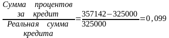 Компенсационный остаток приводит к увеличению эффективной годовой ставки. С учетом компенсационного остатка (КО) номинальная сумма кредита составит не 325000 дол., а