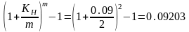 - Величина эффективной процентной ставки при начислении простого процента и годового кредита составит 9%.