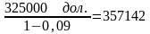 Если процент по данному кредиту дисконтный, то, следовательно, номинальная сумма кредита, достаточная для получения 325 000 дол. составит: