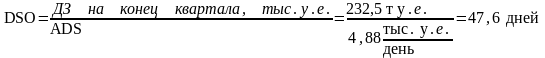 Аналогично рассчитываем и другие месяца. Однодневный товарооборот (АDS) и оборачиваемость дебиторской задолженности в днях (DSO), рассчитанные на основе информации квартальных финансовых отчетов составят (на примере первого квартала):