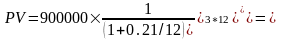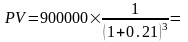Используем эту формулу для расчета варианта с начислением сложных процентов один раз в год, FV = 900000 грн, i =21%, n = 3 года.