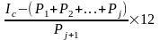 При этом, j определяется последовательным сложением ежегодных денежных потоков Pk до тех пор пока полученная сумма будет меньше Ic (соблюдается неравенство (P1+P2+ … +Pj) ≤ Ic). Количество слагаемых в левой части неравенства равно j.