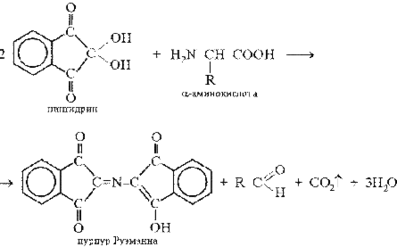 При нагріванні з нінгідрином утворюється синьо-фіолетове забарвлення (комплекс Руєманна).