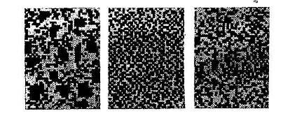 (утворення зроблених або безперервних змішаних кристалів) або в певній області концентрації (утворення змішаних кристалів з обмеженою розчинністю). Під утворенням змішаного кристала розуміють заміну компонента А компонентом В (або навпаки) у кристалічному стані. Виникаючий змішаний кристал (або твердий розчин) є гомогенним і приймається за одну фазу. Процес утворення змішаного кристала на атомному рівні можна наочно представити за допомогою мал. 1. Атоми компонента А, наприклад Сu, безупинно й статистично заміняються атомами компонента В, наприклад Ni, поки, нарешті, не виходить у підсумку ґрати чистого компонента В. Тому розподіл розчиненого компонента в змішаному кристалі може поступово змінюватися. Наприклад, Лавес розглядав утворення змішаного кристала, аналізуючи можливі розподіли 50% чорних й 50% білих квадратів (мал. 2). Розподіл стороннього компонента в змішаному кристалі може перебувати на грані статистичного розподілу, наприклад за схемою, б або в, мал. 2, Зі схематичного зображення треба, що в стані б відбувається агрегація (скупчення) атомів одного сорту. У цьому стані можна виявити відому тенденцію до розпаду вихідного гомогенного змішаного кристала. Фактичний розподіл вирішальним образом залежить від умов охолодження.