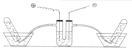 Оборудование и реактивы: Прибор для электролиза, две пробирки, два кристаллизатора, раствор NaOH (массовой долей 5-8 %), изогнутые газоотводные трубки, железные электроды.