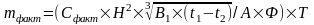 Н – висота труби; В1 – об’єм викиду, м.куб./с; t1 – температура викиду, ◦ С; t2 – температура атмосферного повітря для найтеплішого місяця року в даній місцевості; А – коефіцієнт, що враховує частоту температурних інверсій даної місцевості (для умов України А=160); Ф – коефіцієнт швидкості осідання часток в атмосфері (для газів – 1.0; для парів – 2.0; для пилу – 3.0); Т – число секунд в році.