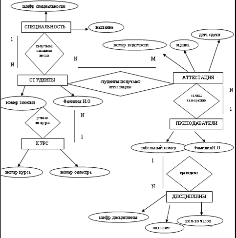 | 4 | АТТЕСТАЦИЯ | - номер ведомости - оценка - дата сдачи |
