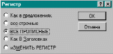 Выберите команду Регистр (Change Case) в меню Формат (Format). Появится диалоговое окно Регистр (Change Case).