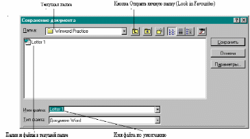 3. Щелкните в поле Имя файла (File Name) и введите имя Letter 1. (Имя файла может состоять из 255 символов, в том числе пробелов и различных символов. Буквы могут быть как прописные, так и строчные).