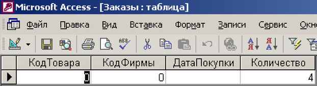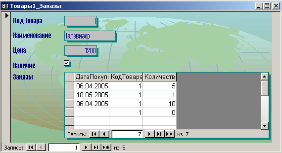 а) Добавляю одну запись в главную таблицу Товары и несколько записей в подчиненную таблицу Заказы;