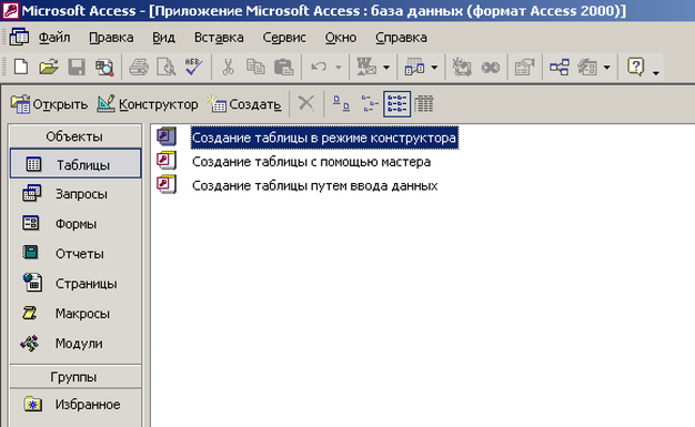 Мы работали с системой управления базой данных (СУБД): при открытии или создании базы данных (БД) в окне Access появляется окно БД. В области заголовка БД представлено наименование и формат БД. В левой части окна БД представлена панель объектов: