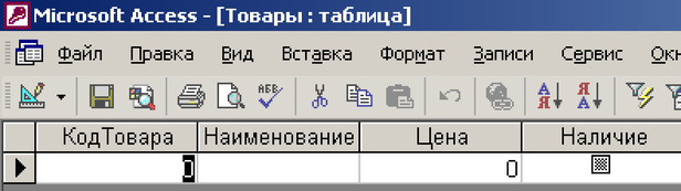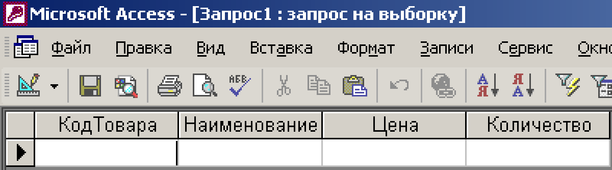 Из таблицы Товары добавляю: КодТовара, Наименование и Цена
