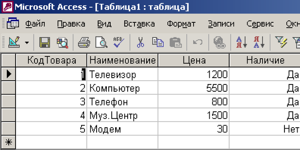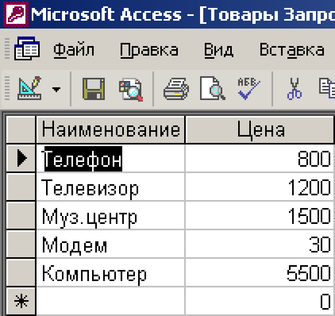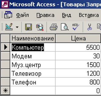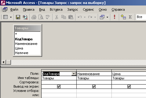 SELECT Товары. КодТовара, Товары. Наименование, Товары. Цена, Товары