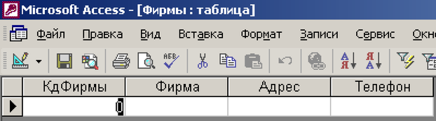 9) Создаю таблицу „Фирмы” в режиме конструктора: