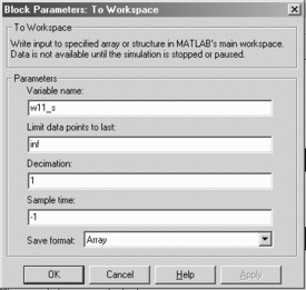 Для визуализации процессов, соответствующих элементам матричной весовой и переходной функций, рекомендуется выводить их, а также текущее время моделирования в рабочую область памяти Mаtlab при помощи блоков To Workspace раздела Sinks, а затем строить их графики, используя команды построения графиков функций одной переменной. В этом случае не возникает проблем с переносом полученных результатов в электронную версию отчета по лабораторной работе и имеется возможность соблюсти все необходимые правила оформления графиков.