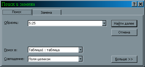 Для осущнствления поиска конкретных вхождений образца в поле выполняем следующие действия: