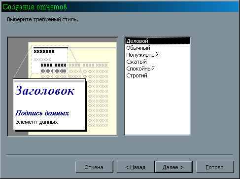 7.Задаем имя отчета и нажимаем кнопку Готово.
