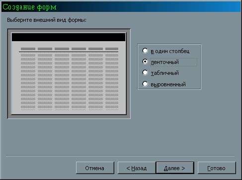 5. Выбираем внешний вид формы, нажимаем кнопку Далее :