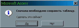 В появившемся диалоговом окне нажимаем кнопку Да для сохранения структуры базы данных (Рис.1.5 )