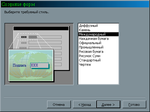 6. Выбираем стиль Международный , нажимаем кнопку Далее.