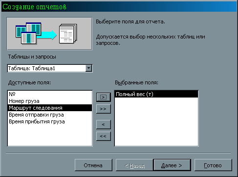 Выбираем поля, которые должны быть в создаваемом отчете.