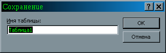 В поле Имя таблицы диалогового окна Сохранение введем имя таблицы (по умолчанию Таблица 1) (Рис. 1.6)