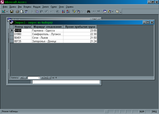 3. Осуществляем просмотр данных, используя команду: Вид – Режим таблицы.