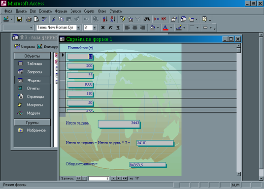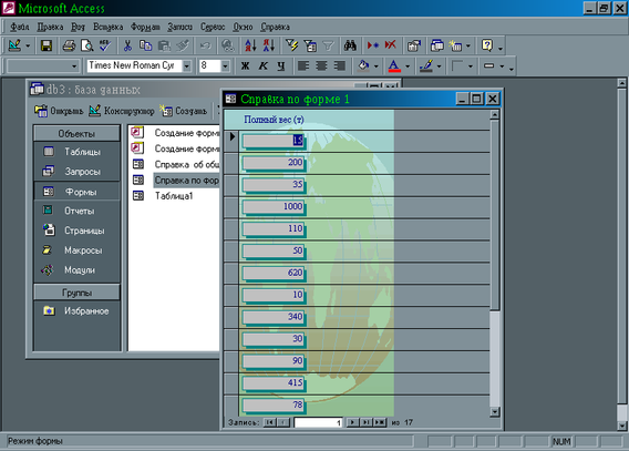 Цель работы: Получение навыков создания форм, форматирование форм и работы с формами.
