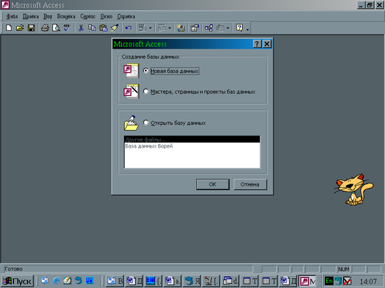 В появившемся диалоговом окне Mikrosoft Acces включаем режим «Новая база данных » и нажать кнопку OK (рис 1.1)