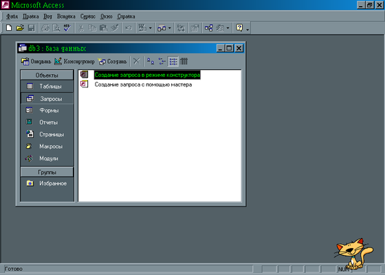 Нажимаем кнопку Создание запроса в режиме Конструктора и нажимаем кнопку ОК.