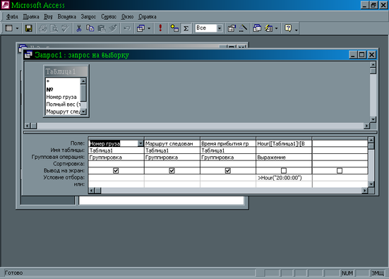 6. В строку Условие отбора вводим данные для отбора нужных нам записей.