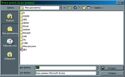 В поле Имя файла диалогового окна Файл новой базы данных вводим имя файла новой базы данных и нажимаем кнопку Создать ( Рис. 1.2)