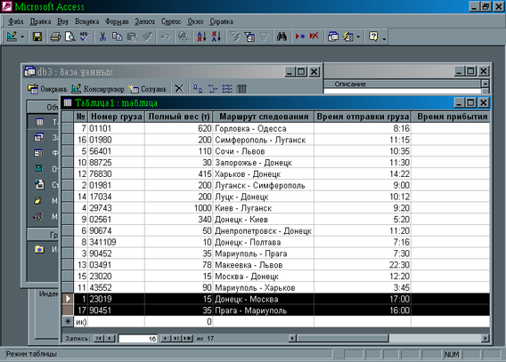 Открываем таблицу базы данных своего варианта, выполнив команду: Вид – Режим таблицы
