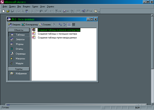 6. В диалоговом окне «Новая таблица » выбираем режим Конструктор и нажимаем кнопку ОК (Рис. 1.3).