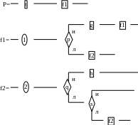 На рисунке 8 приведен пример построения программной функции циклической программы. В данном случае [P] рекурсивно зависит от f1 и f2.