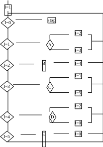 Функциональные блоки неструктурированной схемы заменяются функциональными блоками, которые выполняют те же самые вычисления и присваивают переменной i целое значение, идентифицирующее номер блока-приемника исходной схеме.