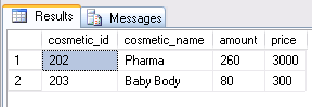 values(202,'Pharma','Makeup remover',3000,260,'11/18/2010','Maybeeline','Tanabaeva Gulzada')