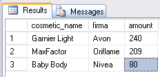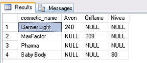 SELECT cosmetic_name, [Avon],[Oriflame],[Nivea]