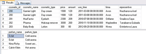 values(201,'MaxFactor','Eyelash',2300,209,'7/8/2010','Oriflame','Smailova Saya')