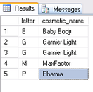 SELECT letter, cosmetic_name FROM alphavit,Cosmetics
