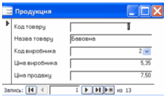 Проста форма Продукція призначена для введення, модифікації та перегляду даних про дану продукцію, створюється посередництвом Авто форми в стовпець. Переходимо на вкладку Формы\Создать\Автоформа: в столбец, як джерело вказуємо таблицю Продукція. Отримана форма представлена на Рисунку 3.