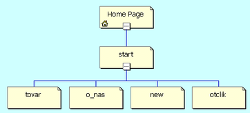3.7 Затем перехожу в режим Navigation и перетаскиваю мышью из поля Folder List файлы start, otclik, o_nas, new, tovar к блоку Home Page, расположенному в центре экрана, чтобы получилась следующая структура web-узла (рисунок 4). Находясь в режиме Navigation удобно перемещаться по созданной структуре и использовать ее при редактировании web-страниц.