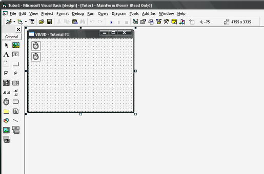 Окно формы, часто называемое просто «форма», является главным элементом приложения. Форма представляет собой контейнер для элементов управления. Точки сетки на форме только помогают размещению элементов и при работе приложения не видны. При запуске Visual Basic открывающаяся на экране форма не содержит элементов управления. После щелчка на пиктограмме требуемого элемента управления курсор мыши принимает форму крестика. Теперь нужно указать в форме начальный угол элемента управления, нажать левую кнопку мыши и, не отпуская ее, установить размер элемента. После достижения нужного размера кнопка отпускается и в форме появляется выбранный элемент управления.