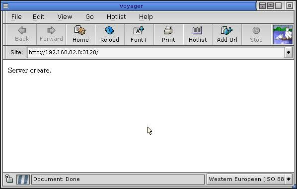 После запуска, данная программа создает простейший Web-сервер, который постоянно запущен. Чтобы обратиться к этому серверу, необходимо в командной строке браузера написать IP адрес компьютера, на котором запущен сервер и порт (в нашем случае порт 3128). На рис. 1 представлен пример обращения к серверу.