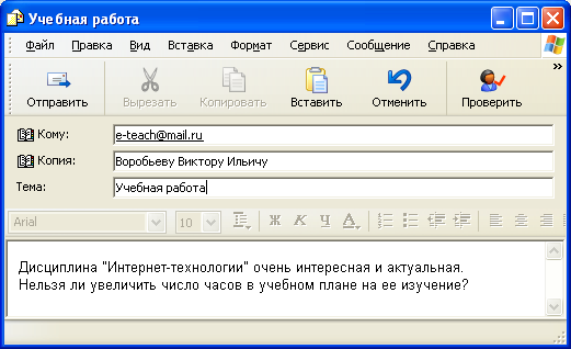 Рис.6. Форма для электронного письма, которая открывается, если щелкнуть ссылку на электронный адрес.