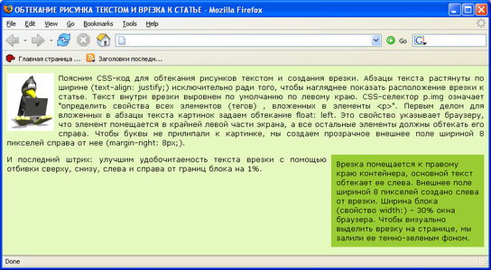 Рис.4. Обтекание рисунка текстом и врезка к статье улучшают качество страницы сайта.